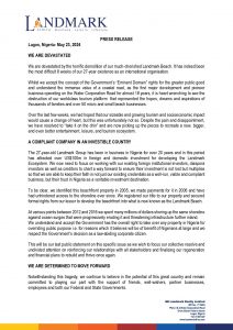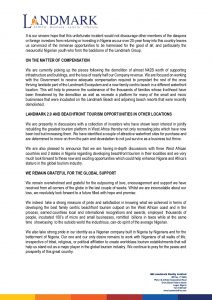 Landmark also announced that it is now looking to partner with three West African countries and two States in Nigeria to develop beachfront tourism in their localities.