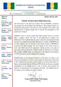 The statement noted that the individuals who participated in the meeting, claiming leadership roles within MOSOP and its affiliates, were disowned by the organisation’s recognised organs.