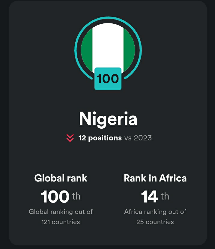 Nigeria has fallen to 100th place in the 2024 Digital Quality of Life (DQL) Index by cybersecurity firm Surfshark. This decline is notable, considering the country ranked 86th in 2022 and 88th in 2023. Nigeria is now 14th out of 25 countries in Africa, trailing behind South Africa at 66th and Kenya at 89th globally.