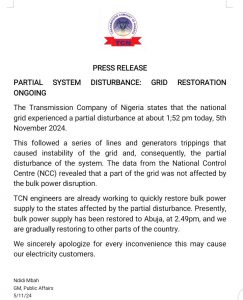 The Nigerian Electricity Regulatory Commission (NERC) has also expressed concern over the escalating disturbances, noting their severe impact on service reliability and economic productivity.